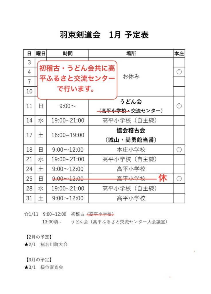 R4.1月予定表 変更いたしました⬇(2022.1.26)