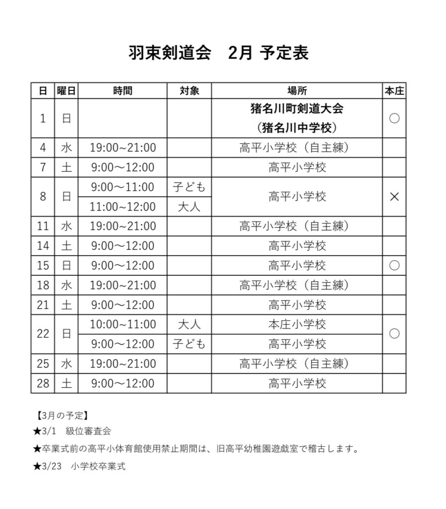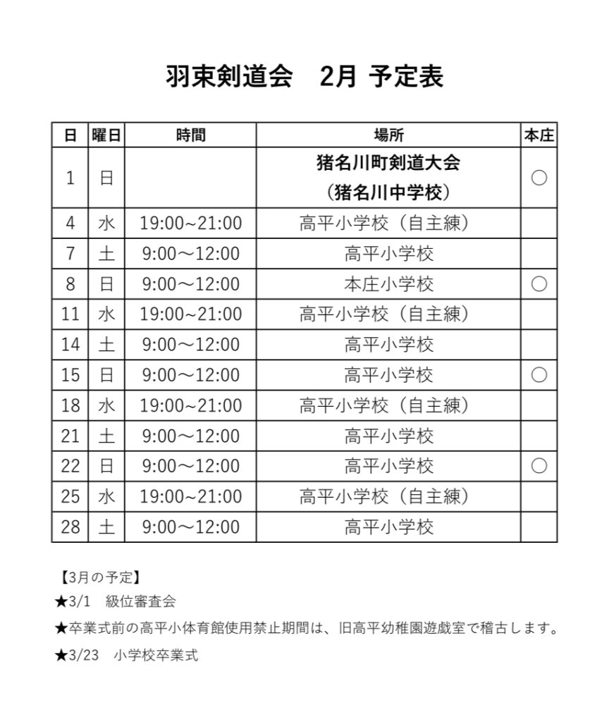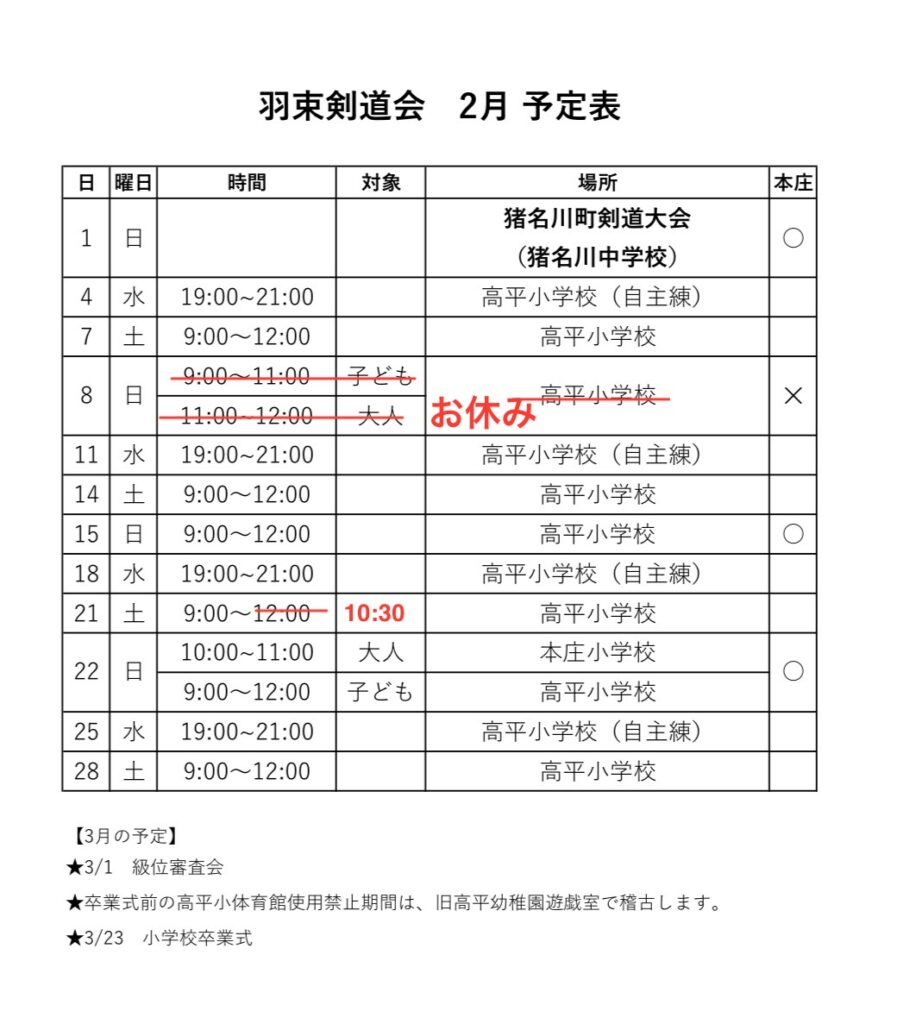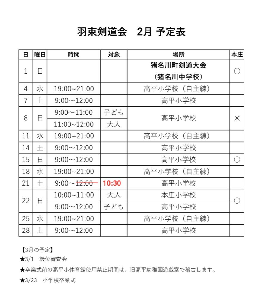 R4.2月予定表 変更いたしました⬇(2022.3.8)